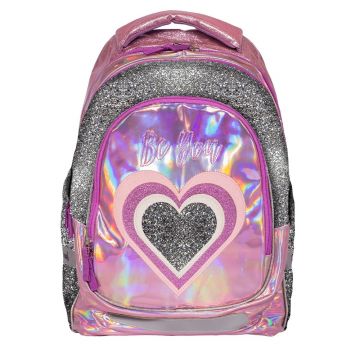 Ghiozdan neechipat 3D ergonomic pink heart, 42x30x22 cm, S-COOL